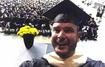 After briefly describing new research regarding the brain and neuroplasticity, Marlow emphatically stated, “As you pursue your life missions, don’t forget that it is never too late to be the best version of yourself.” He then took a selfie with the graduates in the background.